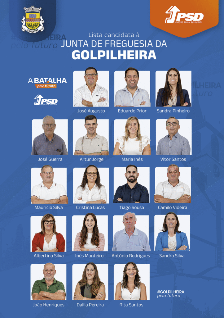 A equipa candidata pelo CDS-PP é composta por gente humilde, trabalhadora, credível, com experiência de vida em todas as áreas; não aparecemos apenas no período de eleições, vivemos a nossa freguesia todos os dias, com alegria e vontade de ver as pessoas com motivos para sorrir e serem felizes. A Golpilheira é a nossa casa comum e propomo-nos a cuidar dela como cuidamos da nossa casa.